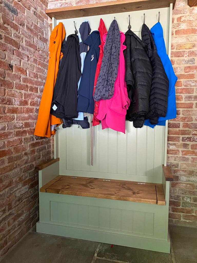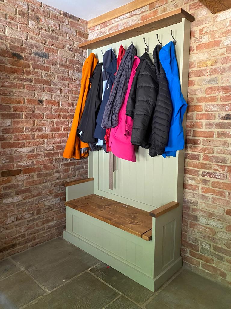 Our coat racks are made to order, finished in Farrow & Ball with the shelves finished in Fiddes Hard Wax Oil. The hooks are heavy duty Cast Iron. Available in the following sizes: